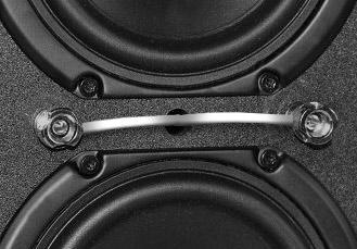 Dezent erfolgt die Verkabelung der Lautsprecher, denn in der „Ecke“ des Lautsprechers befindet sich eine kleine Nut für die problemlose Verlegung der Kabel in der Raumecke. Durch das Loch an der Vorderseite kann das Kabel bequem angeschlossen werden und verschwindet unsichtbar hinter der Frontabdeckung.
